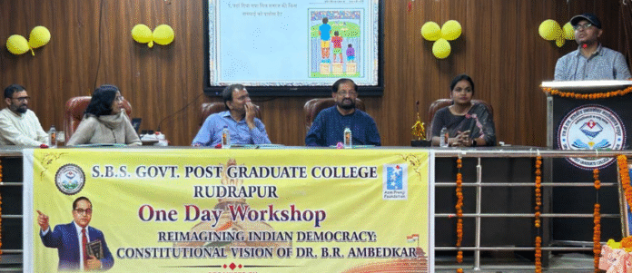 रुद्रपुर स्थित सरदार भगत सिंह राजकीय स्नातकोत्तर महाविद्यालय के इतिहास विभाग ने सोमवार को “Reimagining Indian Democracy: Constitutional Vision of Dr. B.R. Ambedkar” विषय पर एक दिवसीय कार्यशाला का आयोजन किया। यह कार्यक्रम महाविद्यालय के न्यू कॉन्फ्रेंस हॉल में अजीम प्रेमजी फाउंडेशन के सहयोग से संपन्न हुआ।